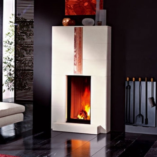 Если же Вы отдадите предпочтение камину из белого камня, то вертикальный декоративный элемент может быть либо того же цвета, что и основание, либо насыщенного кирпичного цвета. В любом случае, эта оригинальная модель подарит Вам тепло горящего пламени, а вместе ним - самые положительные эмоции.