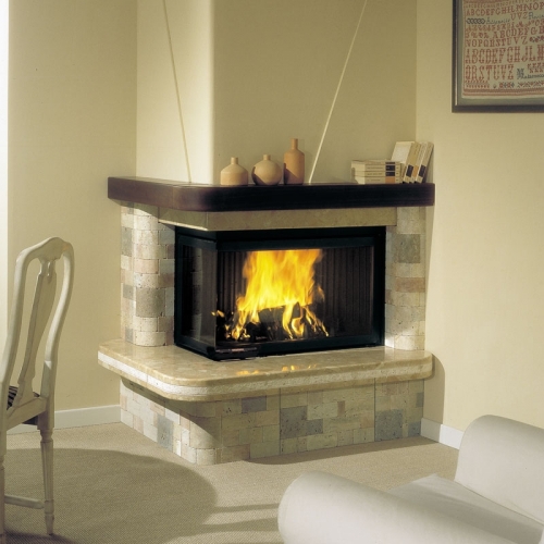 Этот угловой пристенный камин Lego изготовлен из разноцветных кусочков травертина, образующих мозаику. Полка и верхняя горизонталь этой модели выполнены из полированной мраморной крошки Trani. Балка этого камина изготовлена из массива дерева. Эта модель камина станет для Вас и современным домашнем очагом, и необычным элементом Вашего интерьера.