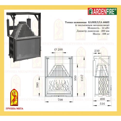 Каминная топка Мета Ardenfire Камилла 800П