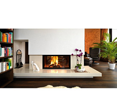 Высокопроизводительная компактная встраиваемая каминная топка C-4/70 из огнеупорного чугуна, с прямым фасадом и дверкой с керамическим стеклом. Оснащена системой самоочистки стекла, функцией дожига вторичных газов и термостатом безопасности.