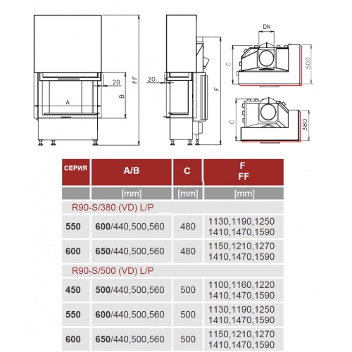 Каминная топка Kobok Corner 780 VD R90-S/380 L/P