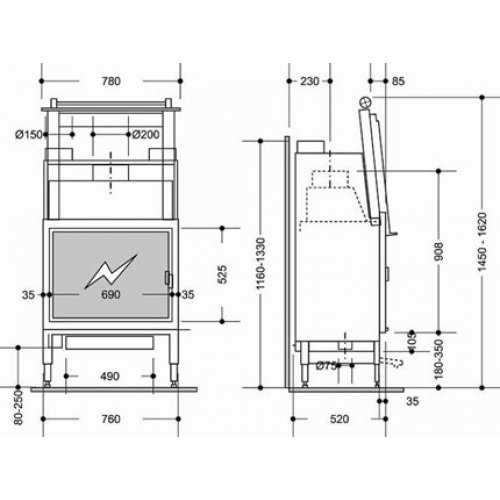 - Топки с подъемной дверцей снабжены противодымной камерой, установленной на заводе