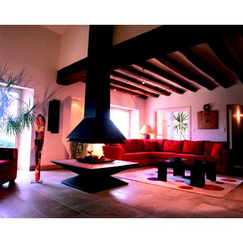 Описание: Очень эффектный центральный камин.По желанию его можно дополнить защитными экранами из керамического, жаростойкого стекла.
