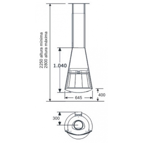 Подвесной пристенный камин, выполненный в стиле High-Tech, изготовлен из жаропрочной стали. Топка с надежной полукруглой дверцей из жаропрочного стекла. Кожух дымохода регулируется по высоте. Встроенная задвижка, при помощи которой можно регулировать тягу.