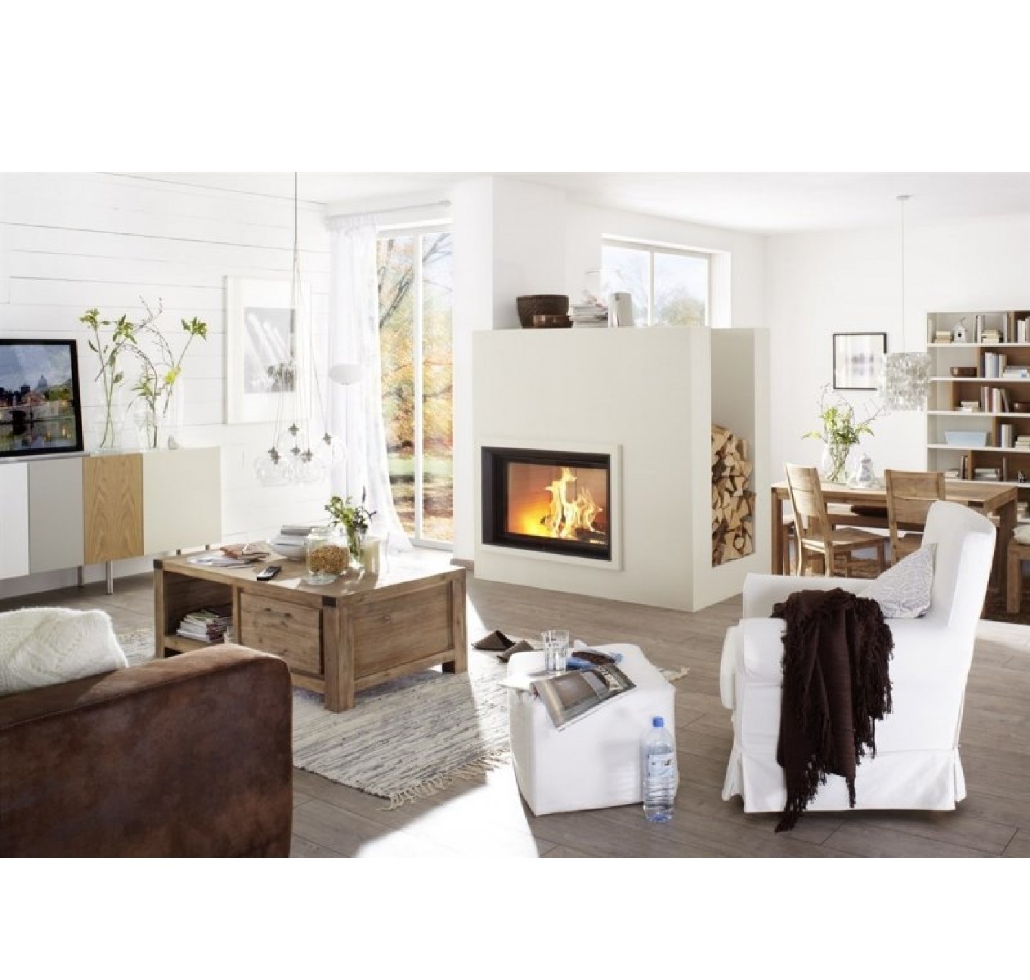 Каминная топка с прямым стеклом отлично подойдет для отапливания загородного дома. Уменьшенная глубина. Топка работает на дровах. Корпус выполнен из огнеупорной стали, внутренний обклад из шамота. За работой топки можно наблюдать через широкое огнеупорно стекло. Дверца открывается как вверх, так и вбок, что упрощает обслуживание и закладку дров. Ширина дверцы 781 мм, высота дверцы 502 мм. Система "чистое стекло".