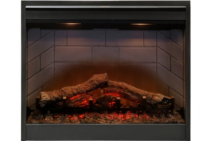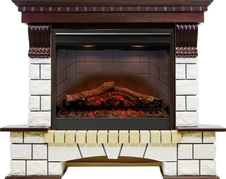 В очаге предусмотрена возможность выбора режима обогрева –1 или 2 кВт, эффект пламени может работать независимо от обогрева. Максимально реалистичный муляж дров делает очаг максимально похожим на обычный дровяной камин. Визуализация кирпичной кладки выполнена по всем внутренним стенкам очага. В очаге реализована функция плавно регулируемой подсветки. В комплекте с электрокамином предлагается пульт ДУ, чтобы холодными длинными вечерами, уютно устроившись в кресле, можно было только нажимать кнопки и наслаждаться отдыхом, любуясь завораживающим пламенем..