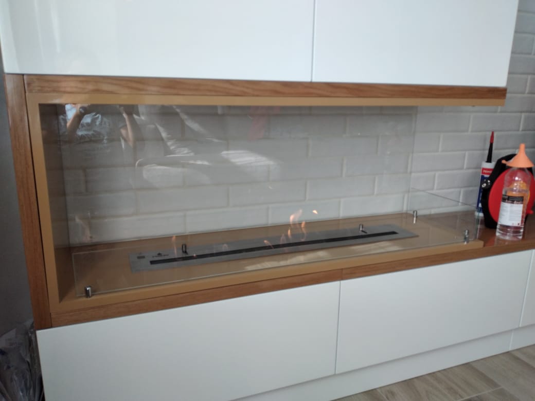 Угловой топливный блок Firezo Bruciatore, длинной 1230х365 для нашего клиента из Москвы. Популярная модель, которую дизайнеры могут дополнять стеклом. В данном проекте нужна была встроенная модель, выбор клиента определил широкий функционал топливного блока:
